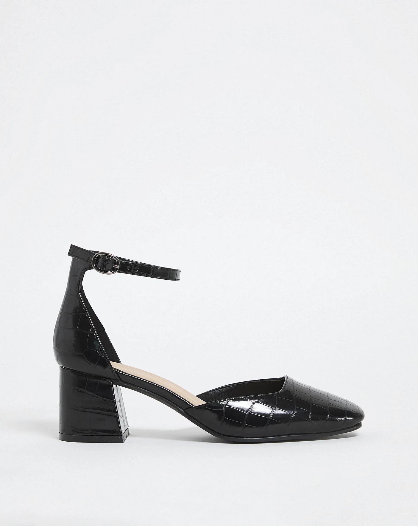 Our new two part block heel shoe is perfect to take you from day to night. Featuring a cushioned sock, ankle strap fastening, a block heel and a flexible sole to allow for natural foot movement.