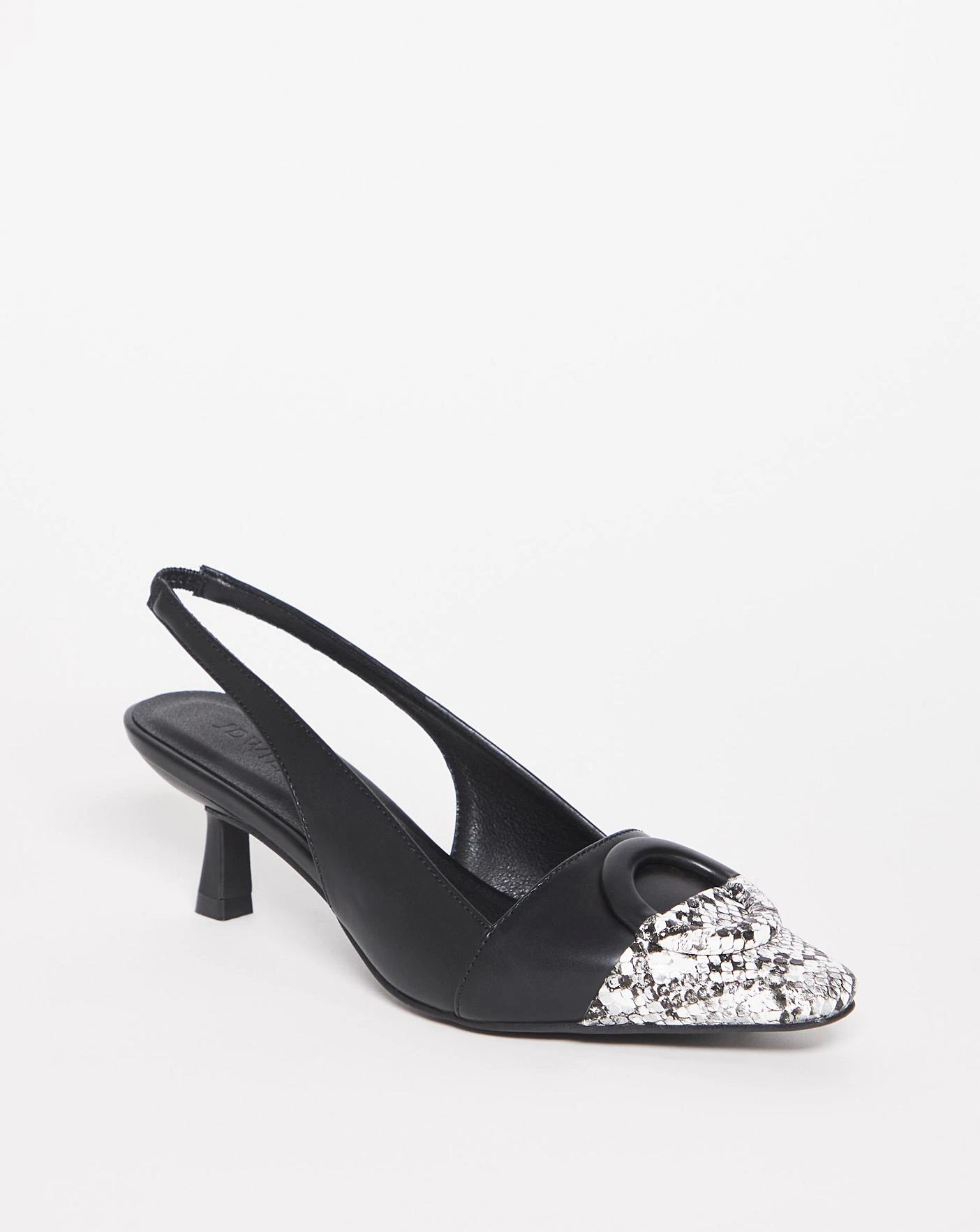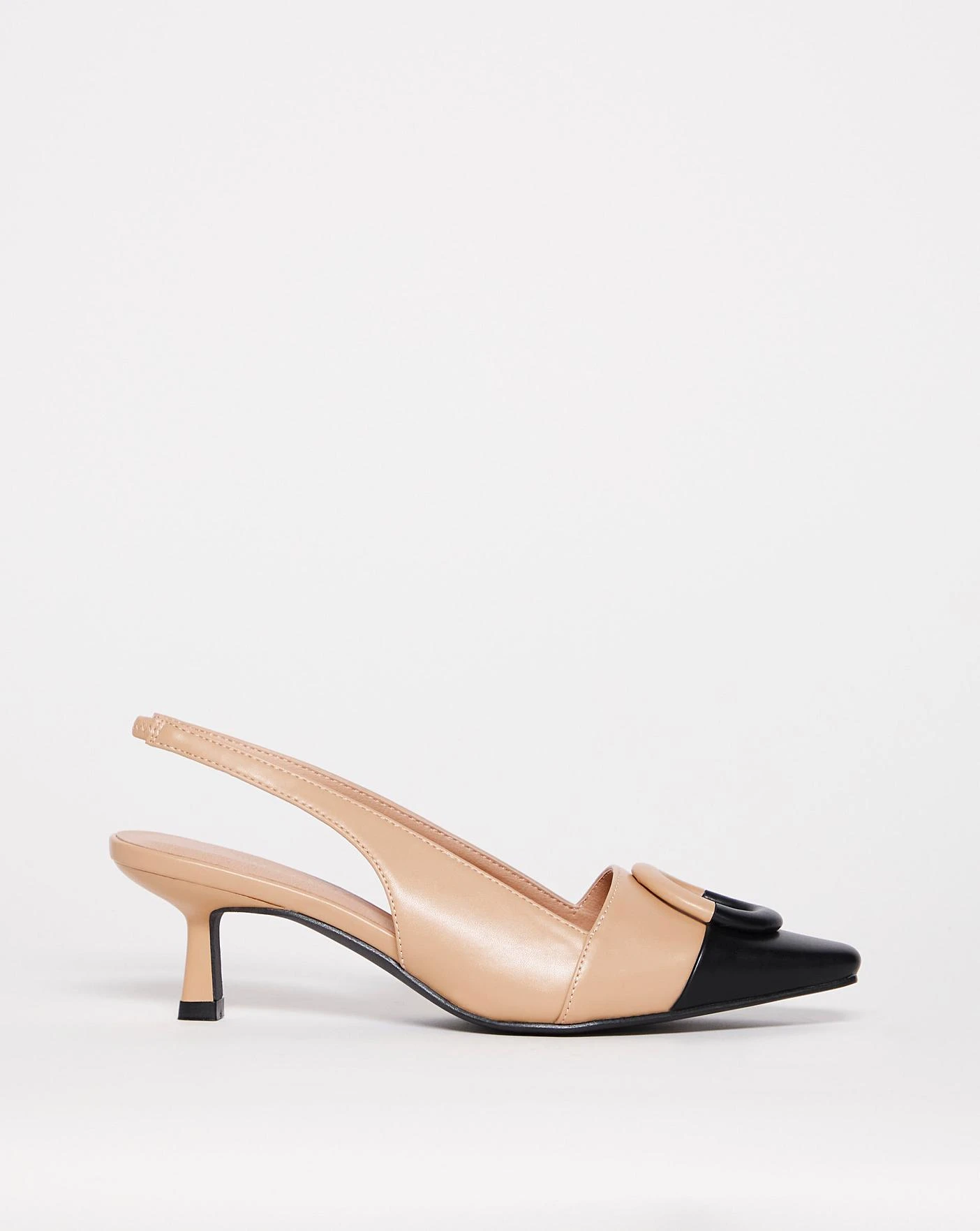 A must have addition to your shoe collection, our new two tone slingback court shoe. The elasticated slingblack allows extra ease to slip on and the padding adds extra comfort.
