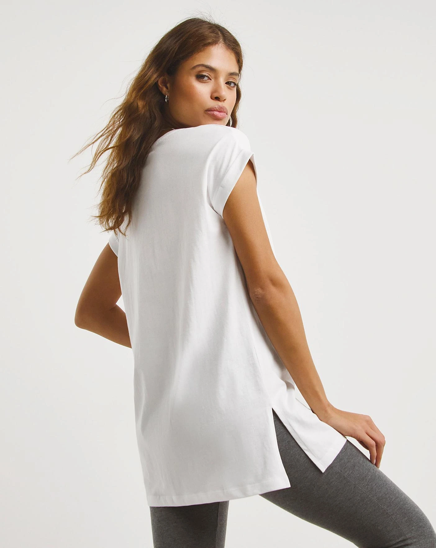 Perfect your casual style all year round with this relaxed T-shirts. This T-shirt is in a super comfortable cotton, ensuring maximum comfort and making this tee an everyday winner and a bargain! Pair with jeans and your favourite leather jacket for an effortlessly chic daytime look.