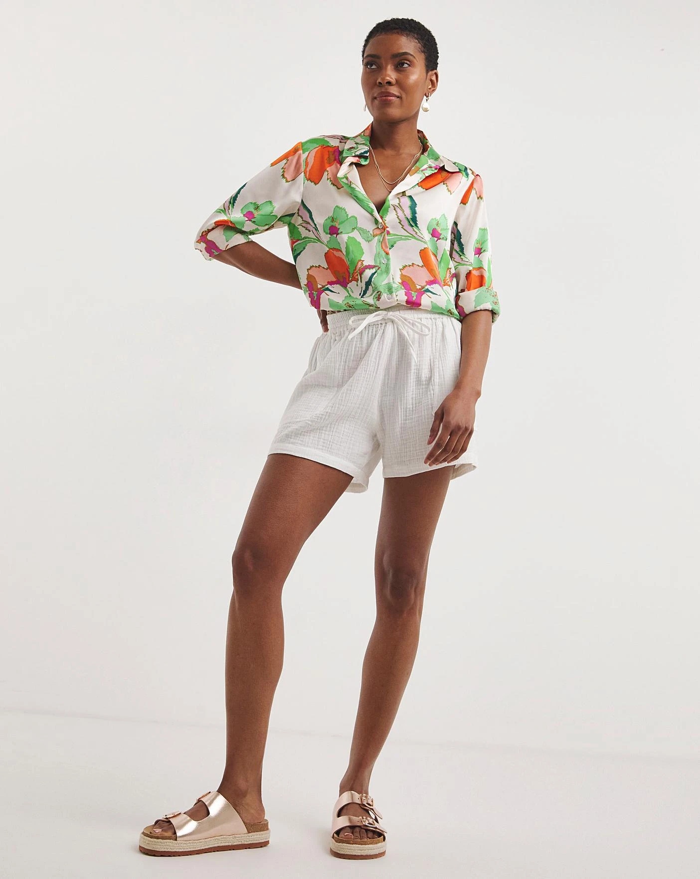 Our new double cloth cotton fabric is a wardrobe essential this season. The crinkle texture of the fabric means it doesn’t crease and is perfect for packing for your holidays. Lightweight and super easy to wear, these cheesecloth shorts are a wardrobe essential and can be paired back with any top for a summertime look. A pull on style with an elasticated waistband for additional comfort, these shorts are effortless, timeless and super stylish.